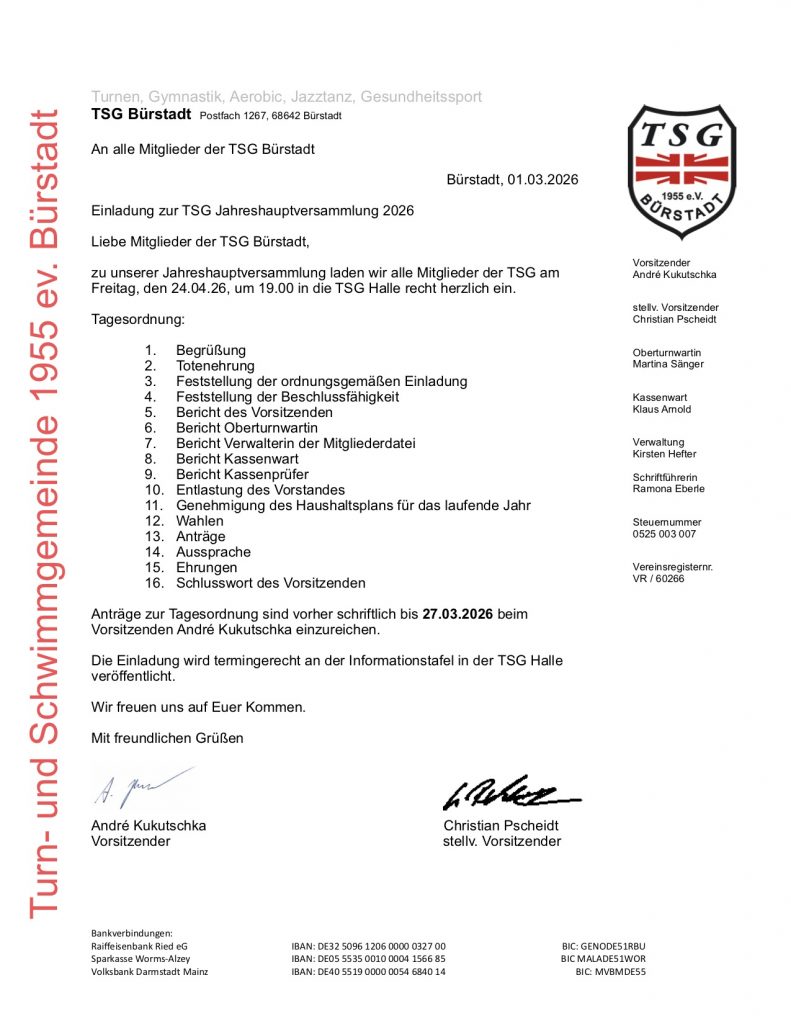 Einladung zur Jahreshauptversammlung 2026